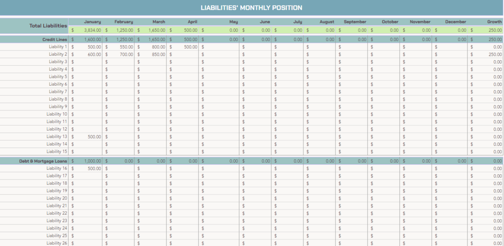 - Liability Tracker: The tool also allows you to track financial liabilities such as mortgages, loans, credit cards, student debt, and other liabilities. This gives the user a complete picture of their obligations.